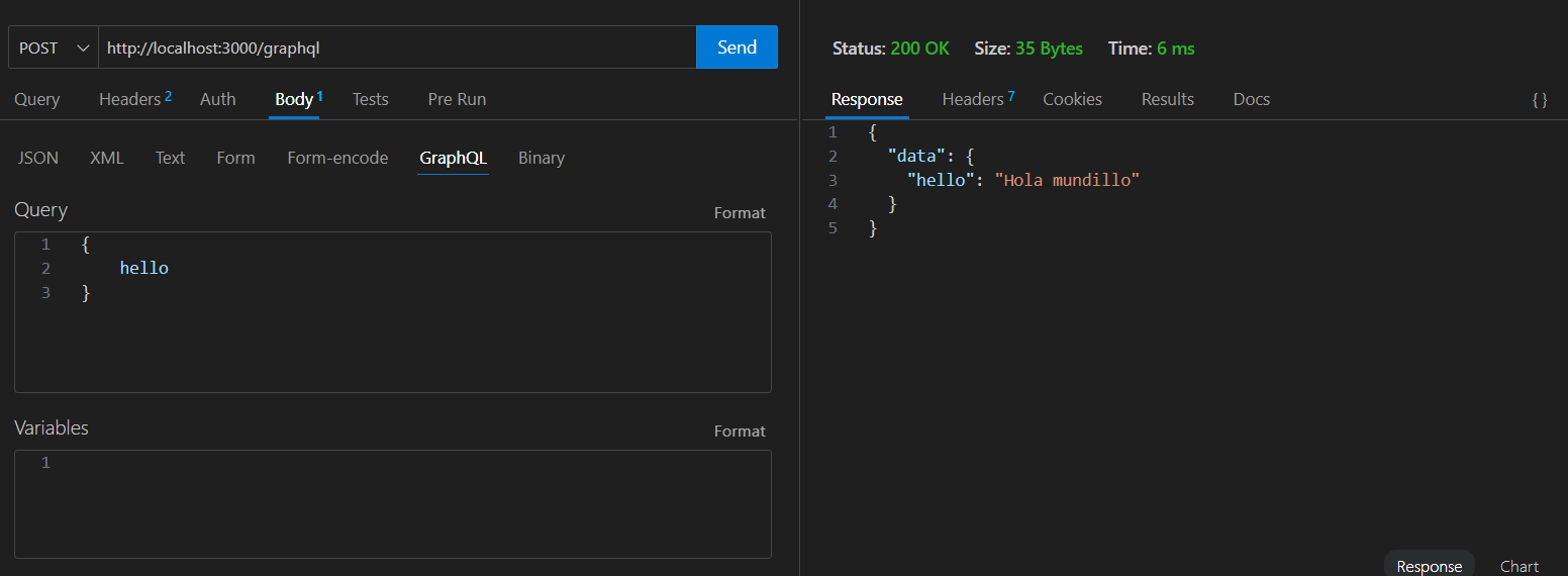 En GraphQL todas las consultas son mediante POST accediendo al endpoint expuesto y toda petición retorna 201.